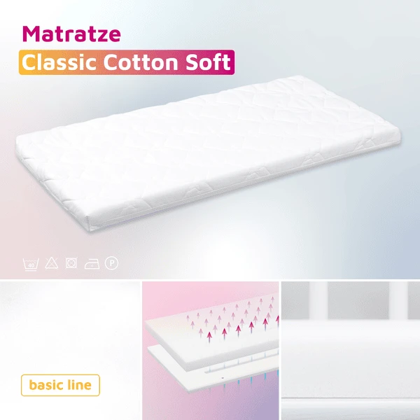 babybay Midi Bassinet wit met matras Calssic Cotton Soft