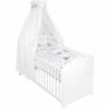 - Bestaat uit een beddengoed, een nest en een tule luifel.