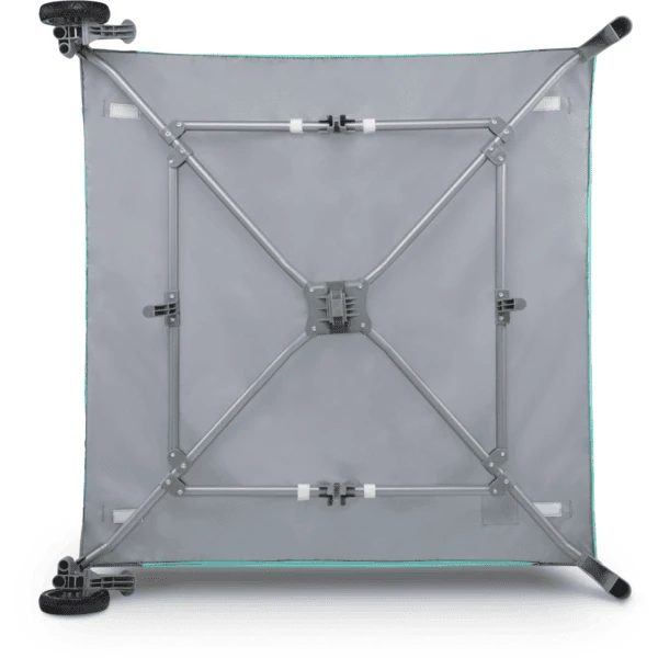 Versterkte constructie, bescherming tegen per ongeluk inklappen, wielen met rem en geen scherpe randen garanderen de veiligheid van uw kind in de box.
