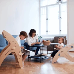Het klassieke hobbelpaard is nog steeds een van de populairste bewegingsspeeltjes voor kleine kinderen. De innovatieve kinderstoel kan in een paar stappen en zonder gereedschap worden omgebouwd tot een stabiele wipstoel. Een optioneel verkrijgbaar speelgoedstuurwiel van hout brengt kleine piloten in een racestemming. Met het optionele houten giraffekopje kunnen kinderen op de schommel safari . Hoogwaardige kunststof lippen op de lopers voorkomen uitglijden en beschermen tegelijkertijd de vloer.