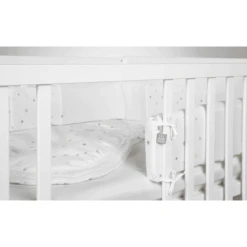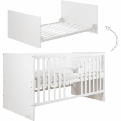 Het kinderbedje kan worden omgebouwd tot een juniorbed en garandeert zo een lange levensduur.