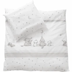 Het omkeerbare beddengoed van roba is een absoluut hoogtepunt in de babykamer. Het hoogwaardige 2-delige babybedlinnen bestaat uit een kussenhoes 40 cm x 35 cm en een dekbedovertrek 100 cm x 80 cm en is gemaakt van huidvriendelijk en ademend katoen.