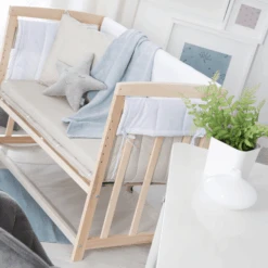 - Kan gebruikt worden als kinderbedje, wieg, wieg en bankje