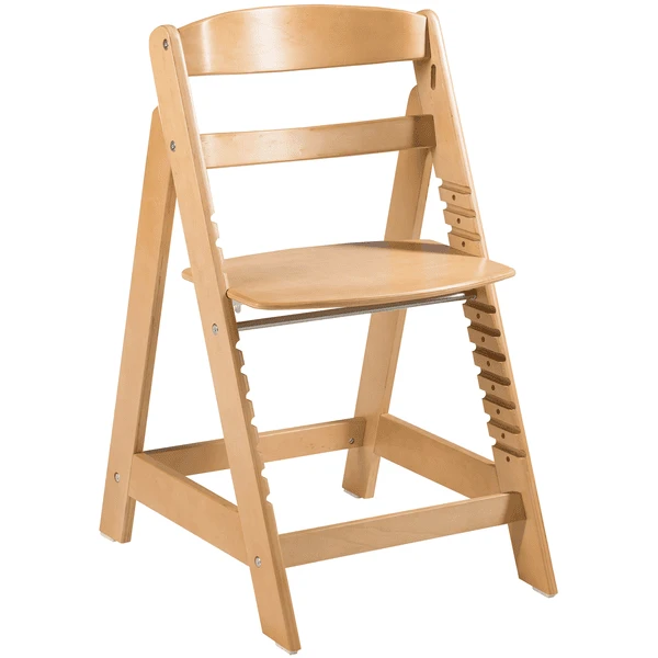 Een veilige en flexibele kinderstoel die met het kind meegroeit. De kinderstoel groeit mee waardoor je kindje altijd in een ergonomische zithouding kan zitten. De kinderstoel biedt optimale ondersteuning voor de rug. Dankzij de speciale constructie staat de houten kinderstoel erg stevig en is de kans van omkiepen nihil. De afneembare veiligheidsbeugel en het gordelsysteem bieden extra bescherming voor wanneer het kind nog wat kleiner is. De kinderstoel is geschikt voor verschillende tafelhoogtes en is gemakkelijk in te stellen. De kinderstoel is geschikt voor kindjes die zelfstandig kunnen zitten (ca. vanaf 6 maanden) tot en met maar liefst 50 kg. De eenvoudige montage van de kinderstoel duurt ongeveer 30 minuten. Zitting en voetsteun kunnen naar wens in de verschillende sleuven worden geschoven. Reinigen met een vochtige doek. Alle gebruikte materialen worden regelmatig gecontroleerd. De lak is huidvriendelijk.