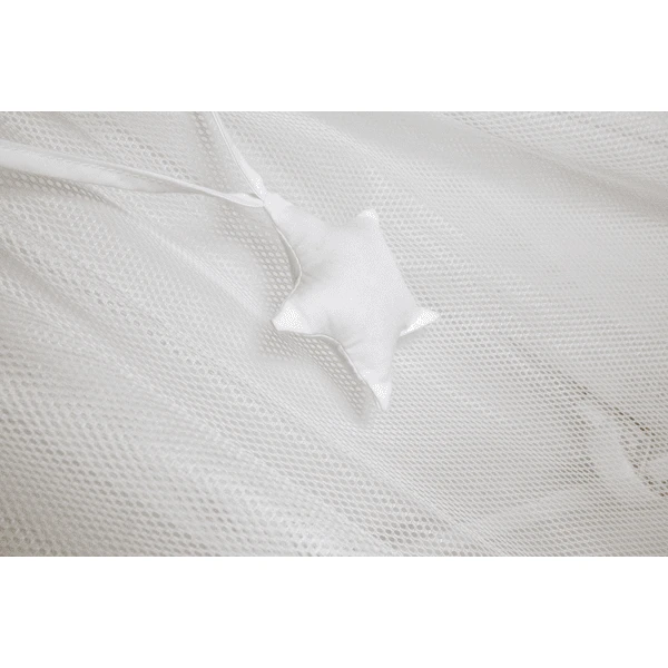 De roba babybedhemel Air safe asleep® met zijn betoverende sterrenhanger verandert de babybed in een plek om te dromen en zorgt voor een optimaal slaapklimaat. In de babykamer is de luchtige gaasdakijn een absoluut hoogtepunt light . De roba luifel in gaaskwaliteit laat de lucht in het babybedje circuleren en er is geen risico op oververhitting. Alle in de overkapping gebruikte materialen zijn getest op schadelijke stoffen en gecertificeerd. De witte luifel voor babybedjes Air safe asleep® van 16% katoen, 84% PES past op de roba luifelpalen 0298 en 0294.