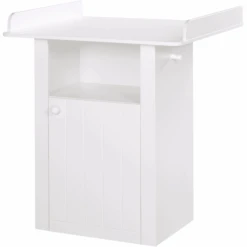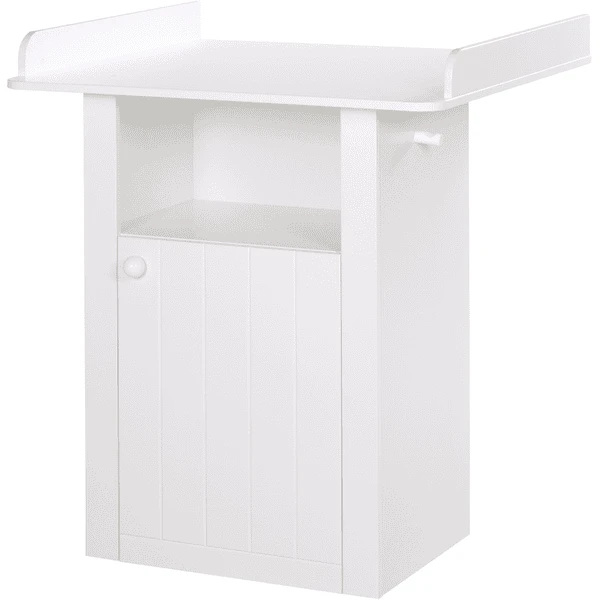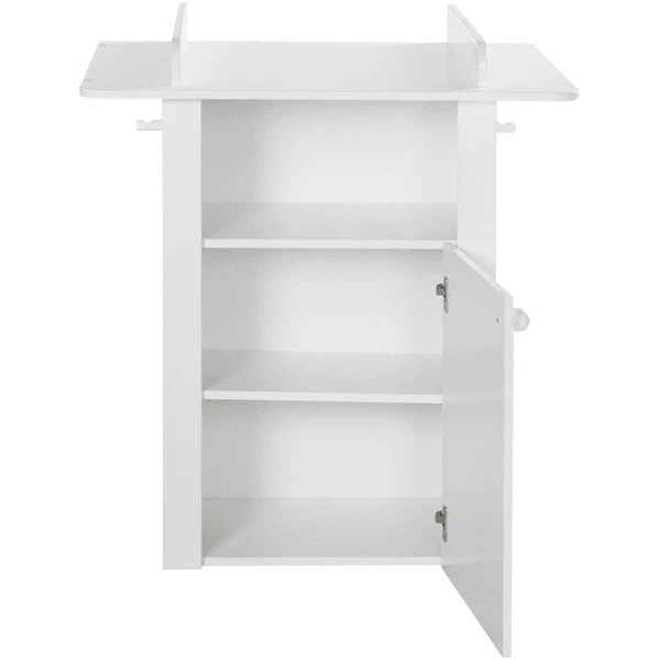 De Lotte Changing roba Chest is een ruimtebesparende luiertafel met een verwisselbaar aanbouwdeel, verstelbare valrails en 3 opbergvakken. De plank achter de deur is 3-voudig in hoogte verstelbaar en biedt plaats aan de belangrijkste hygiëne-accessoires voor baby’s. De plank achter de deur is in 3-voudig in hoogte verstelbaar en biedt plaats aan de belangrijkste hygiëne-accessoires voor baby’s. De plank is voorzien van een extra opbergruimte. Luiers, poeders, crèmes en andere gebruiksvoorwerpen voor de dagelijkse babyverzorging vinden hier hun opbergruimte. Maar het open vak biedt ook een snel toegankelijke plaats voor belangrijke producten zoals onderhoud en handdoeken of washandjes. Een extra jashaak aan de zijkant maakt het mogelijk om klein textiel op te hangen. De deur kan door de ingebouwde soft close-technologie zacht en geruisloos worden gesloten en voorkomt onaangename geluiden. De gefreesde randen in de deurgevel en de kogelgreep geven de babykamer een huiselijke landelijke huisstijl en ronden de ruimte Design optisch af. Dankzij de smalle afmetingen van 98×88,5×74 cm (HxBxD) is dit kleedcentrum ook ideaal voor kleine kamers en appartementen. De praktische 90 cm wikkelhoogte maakt het opwinden nog comfortabeler. Alle oppervlakken zijn veegbaar en gemakkelijk schoon te maken. Er zijn ook veel andere bijpassende meubels verkrijgbaar, zoals de Lotte serie babybedjes, garderobe en wandplank.