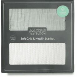 VINTER& BLOOM Giftset Deken Zacht Rooster & Mousseline Deken GOTS B right White /Sage Green